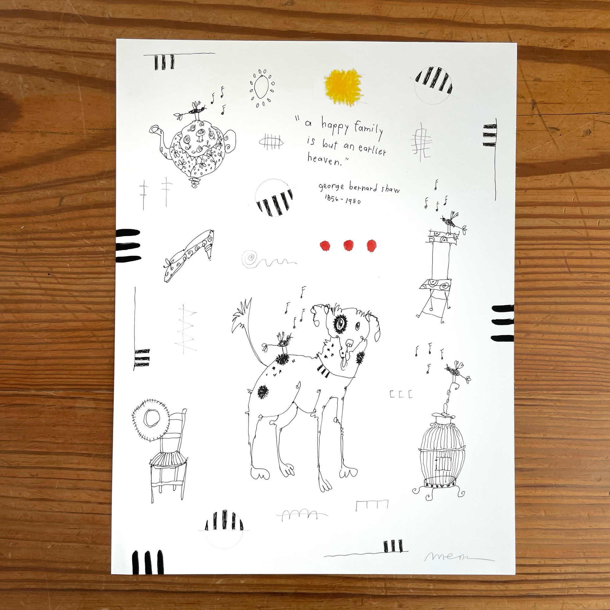 Original 9"x12" mixed media doodle on 100 lb. Strathmore 300 Series Bristol paper