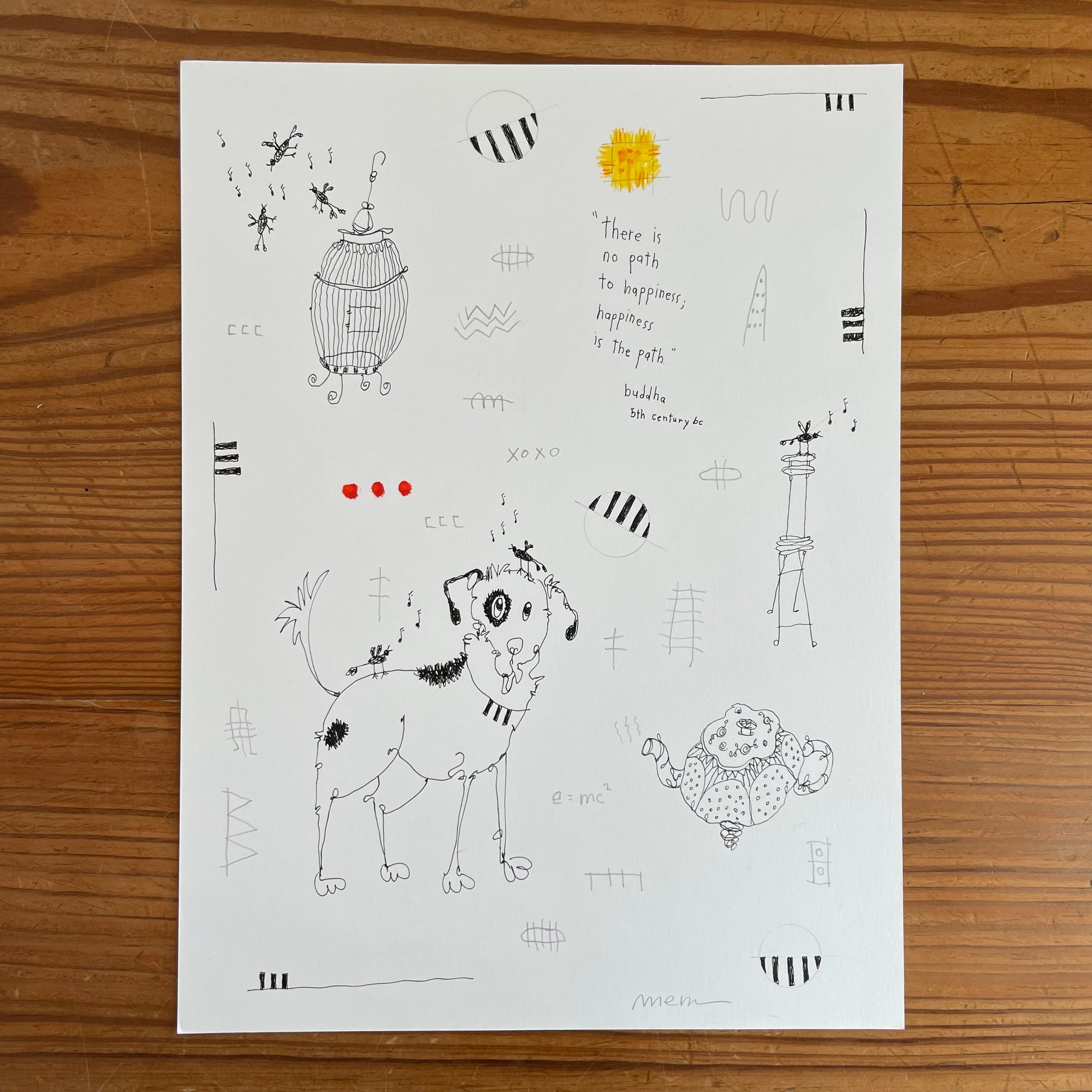 Original 9"x12" mixed media doodle on 100 lb. Strathmore 300 Series Bristol paper
